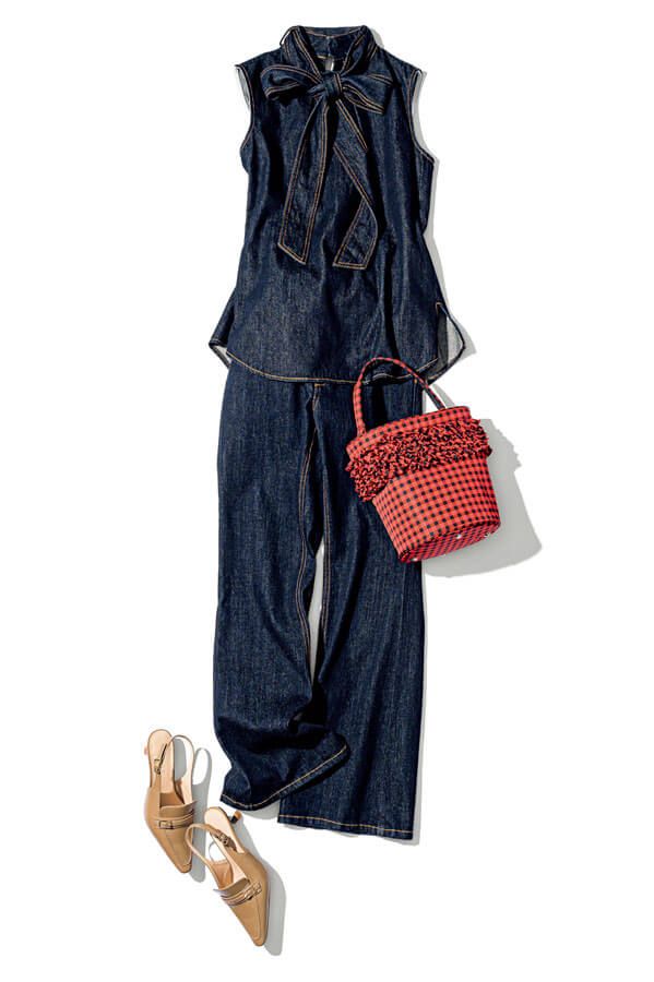 3. 【リランドチュール】ボウタイブラウスと合わせてデニムセットアップに♪