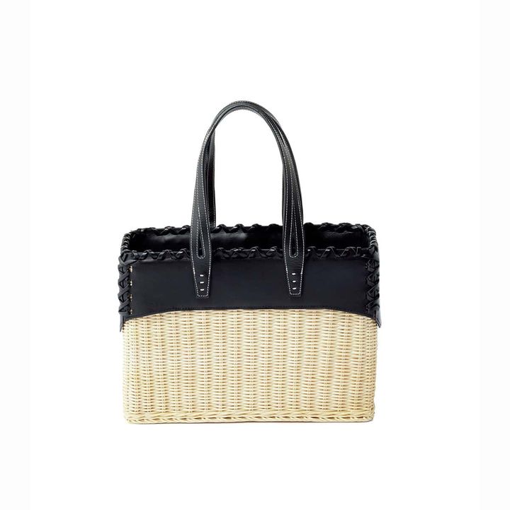 かっちりしたフォルムでカジュアル感を払拭。バッグ〈H24×W36×D15㎝〉¥49,500(ア ヴァケーション/ノーベルバ)