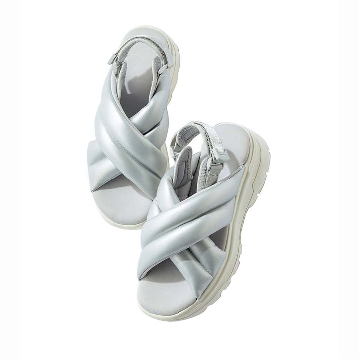 服の色を選ばない万能シルバー。サンダル〈ソール高5㎝〉¥2,990(GU)