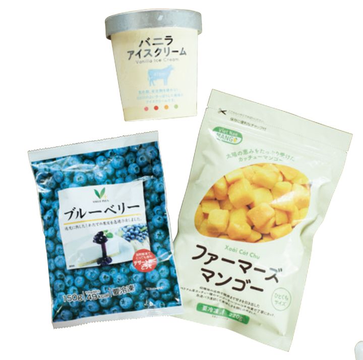 マンゴーやブルーベリーなど冷凍フルーツと混ぜて冷たいデザートに。