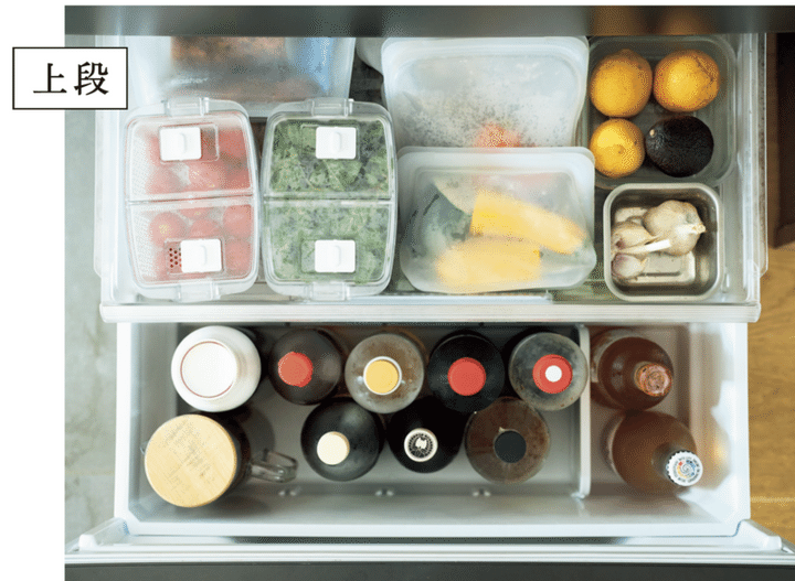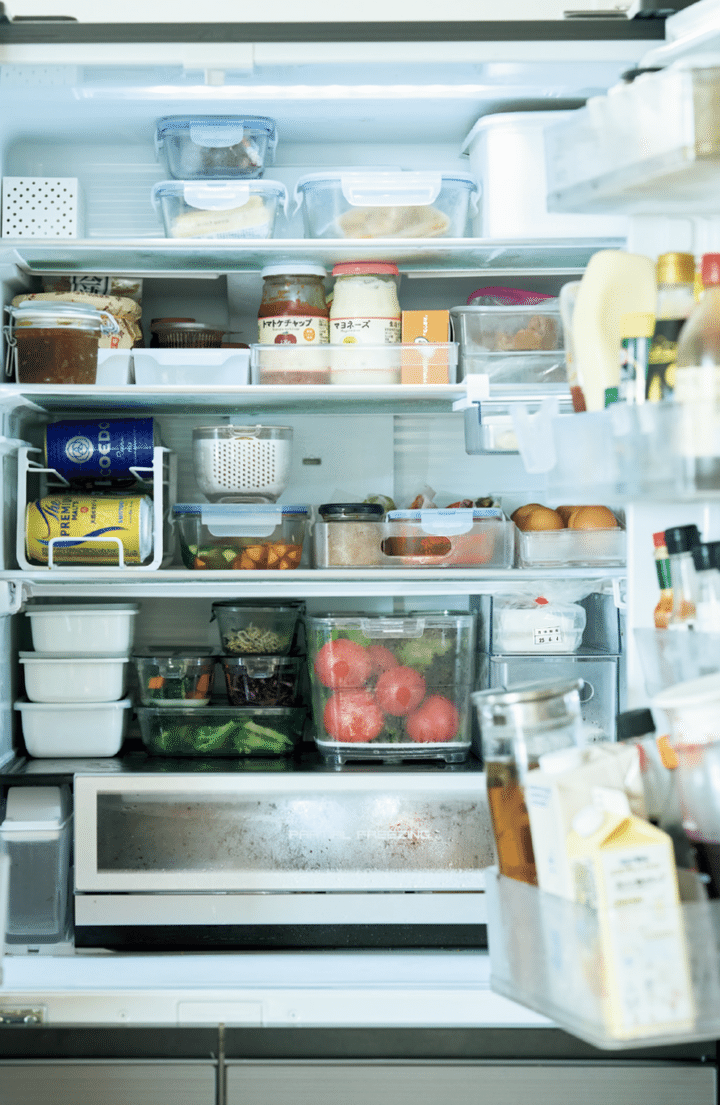 「容器にも色があるとごちゃごちゃして見え、料理する気をなくすんです。冷蔵庫を開けると、気持ちも整うように、収納方法や保存グッズも意識します」