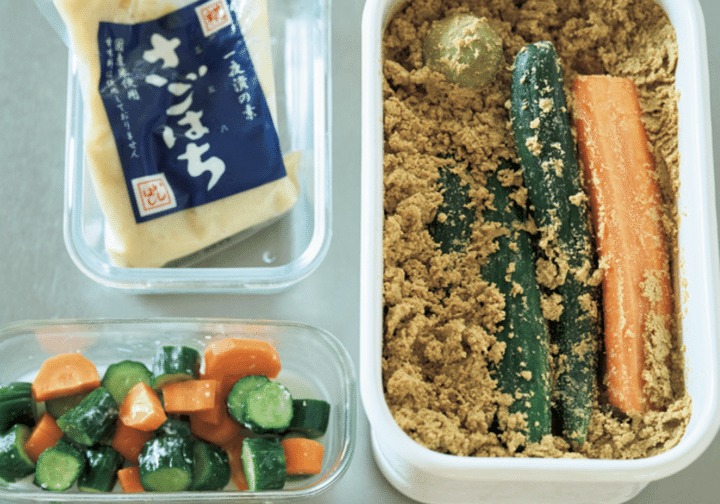 子どもも大好きな浅漬け。ぬか床は、ホーロー容器で保存。