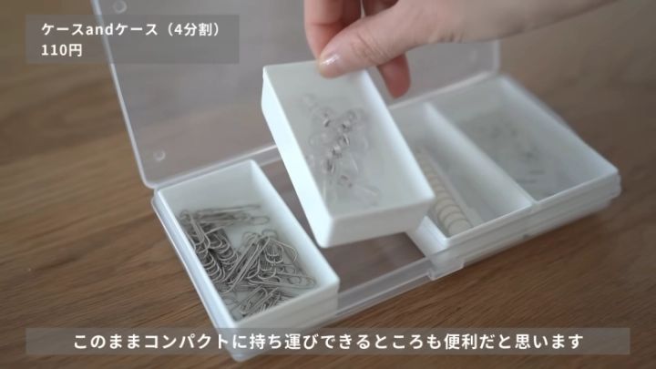 しかも中の白いケースはひとつずつ取り出せる仕様。「これだけちょっと使いたい」というときでも手軽に持ち運びでき、使い勝手もよさそうです。