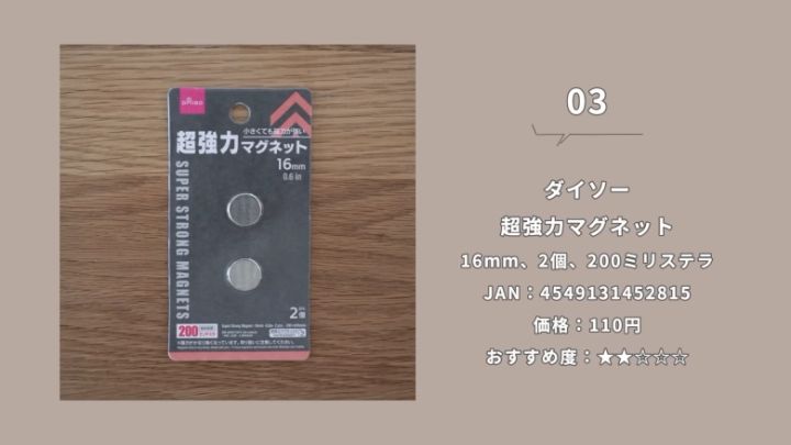小さくてもあなどれないのが、こちらの「超強力マグネット」です。