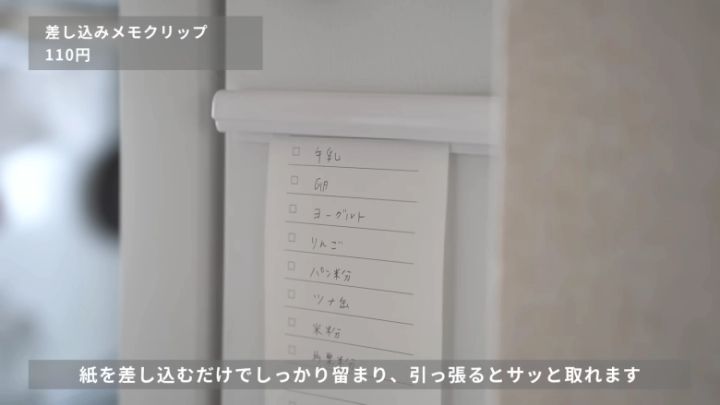 メモを差しているときはホールド力が強く、引っ張ればサッと取れるのが魅力。冷蔵庫などにくっつけて、買い物リストやToDoリスト、子どもの保育園・学校の予定表や案内などを挟むと、すぐに確認できて便利です。