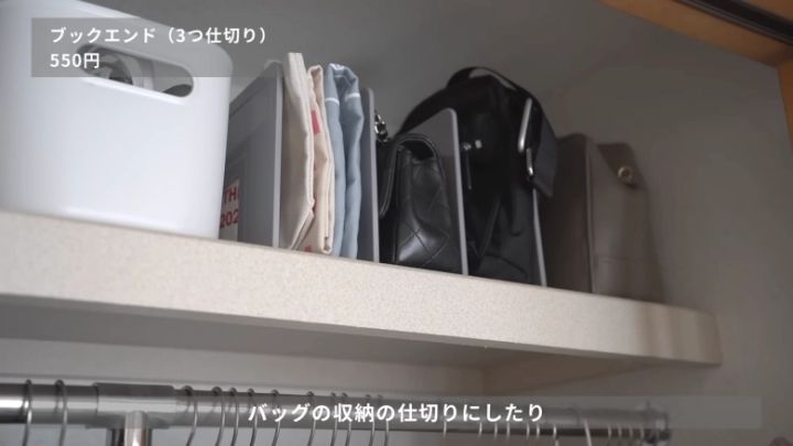 自立が難しいバッグも、こちらを使えばクローゼットにスッキリと収納できます。どこに何があるのかわかりやすく、取り出しやすさも抜群です。