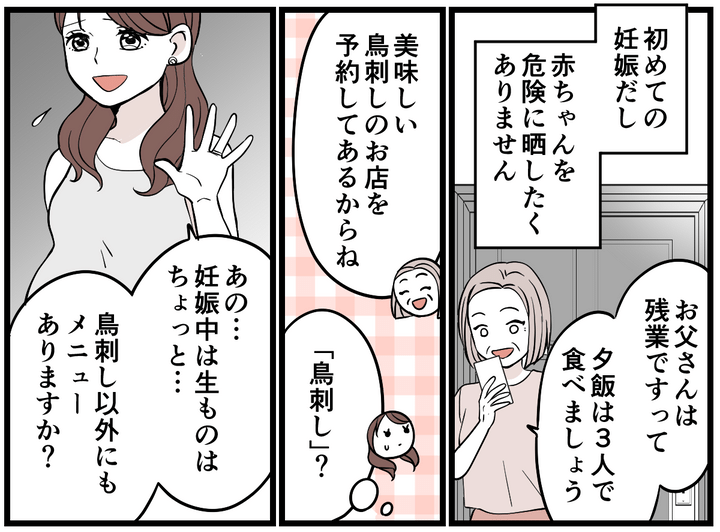 3. <義母、妊婦に生もの強要>看板メニューの「鳥刺し」食べないのは失礼!?圧が怖い…【まんが】