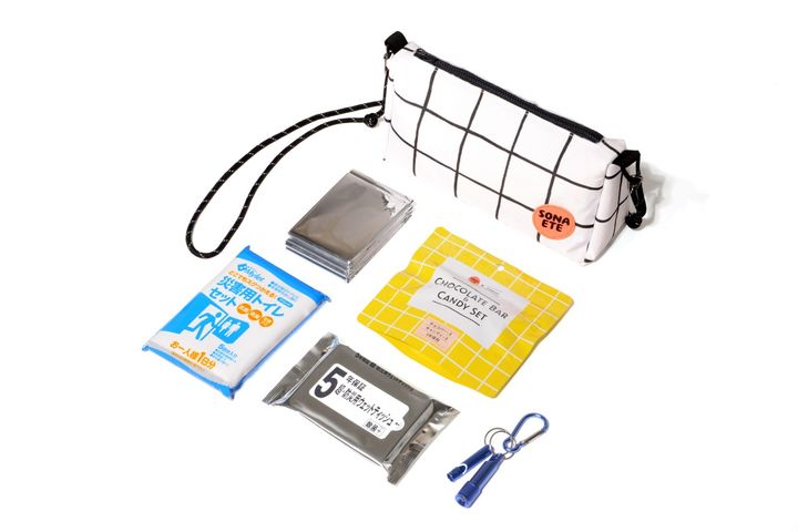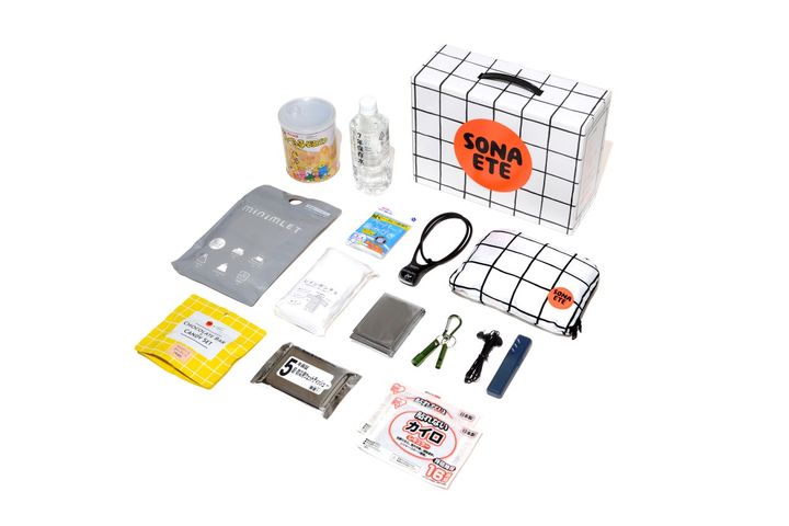 そのほか、一般的にオフィスで使われているキャビネットにぴったり収まるサイズの「Emergency Kit 防災セット」、急場を乗り切るためのミニマムなグッズが入った「Emergency Pouch 防災ポーチ」を用意。目につく場所に置きたくなるデザインをまとったSONAETEで気分を上げながら、日頃の備えをアップデートしよう。