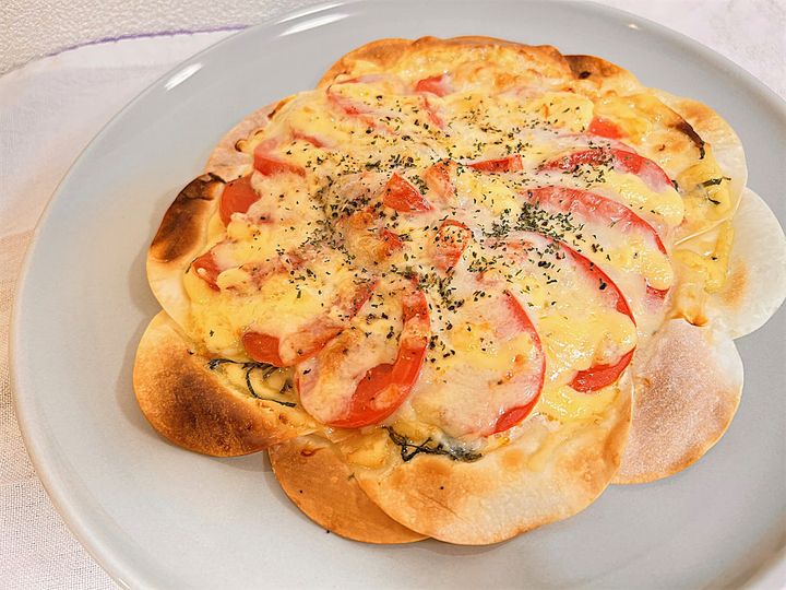 もはやピザ!トマトと青じそであっさりテイスト♡
