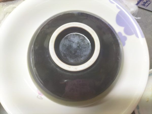お皿を持ちながら上にミニ丼ぶりを被せます。