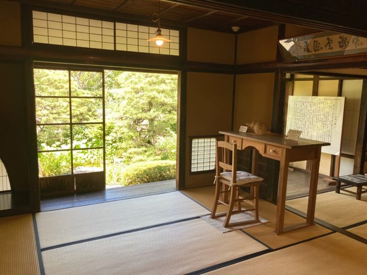 室内には、左目を失明し、右目も強度の近視だった八雲が執筆をするために特注した背の高い机(レプリカ)が置かれています。