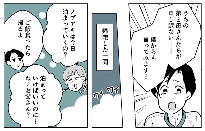 私の言葉を聞いた義姉は、義兄に「長男なんだから何か言ってあげられないの!?」と言ってくれました。