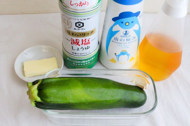 にんにく、バター、しょうゆ、蜂蜜の味付けもズッキーニにぴったり。淡泊な味わいにコクや甘味が付いて、とてもおいしく仕上がりました。