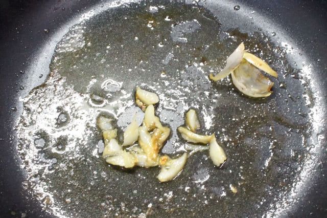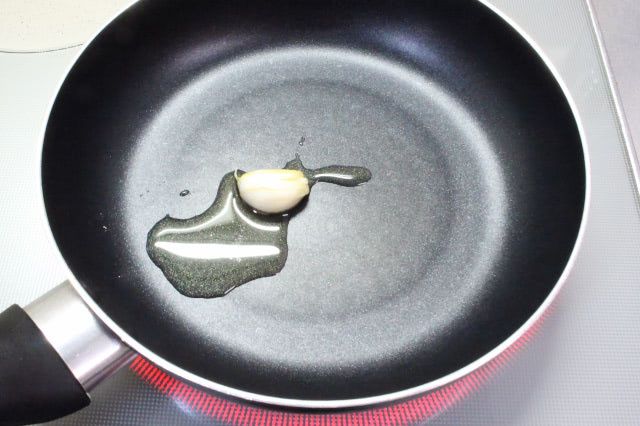 弱火で3分ほど炒めると、にんにくのいい香りが広がりました。