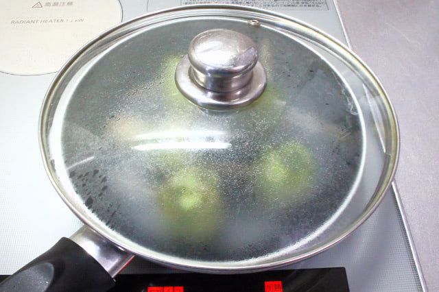 4. フタをして火を弱め、2~3分蒸し焼きにします。