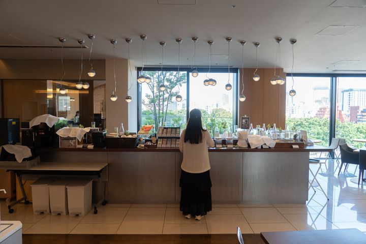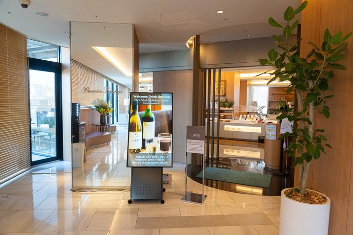 5階にある宿泊者限定のプレミアラウンジでは、13:00~16:00、17:00~20:00の時間帯にウェルカムドリンクと軽食を楽しめます。コーヒー、紅茶、ジュース、日本酒やワイン、お菓子類などが用意されていて、旅の合間にほっと一息つくのにぴったりでした。
