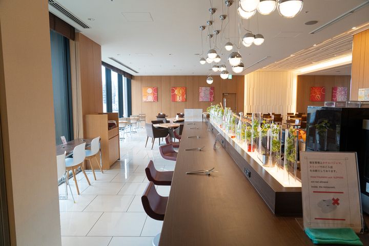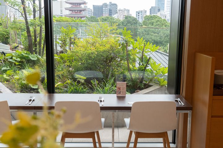 席はゆったりとしたソファやテーブル席が配置されていて、窓からは東京スカイツリー®や浅草寺の五重塔を眺めながら過ごせます。観光の前後に訪れると、視界とともに気持ちもリフレッシュできる空間でした。
