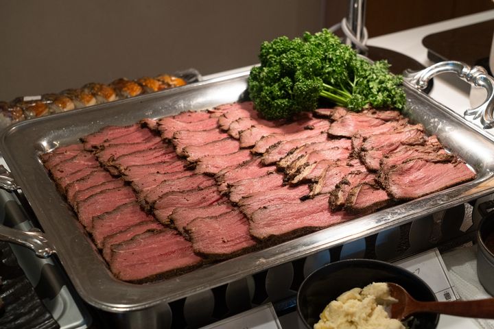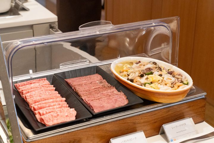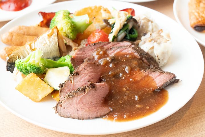 しっとりと仕上げられたローストビーフも大人気のメニュー!普段の朝食では馴染みのないローストビーフが食べ放題なんて、とっても贅沢...!肉質は柔らかく、脂が多すぎず、しっとりとした口当たりが特徴的。特製のソースと西洋わさびが添えられていて、醤油系よりもまろやかで上品な味わいに仕上がっています。