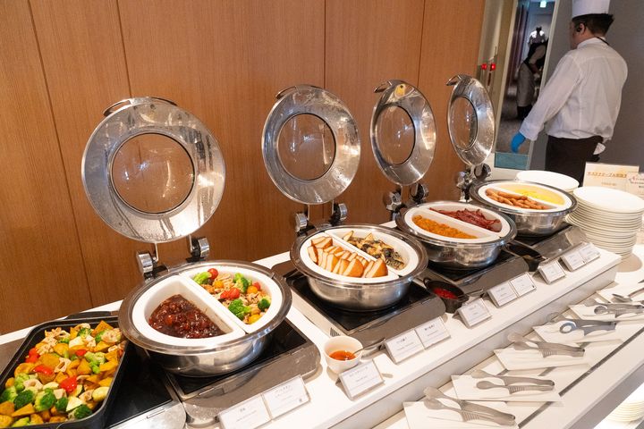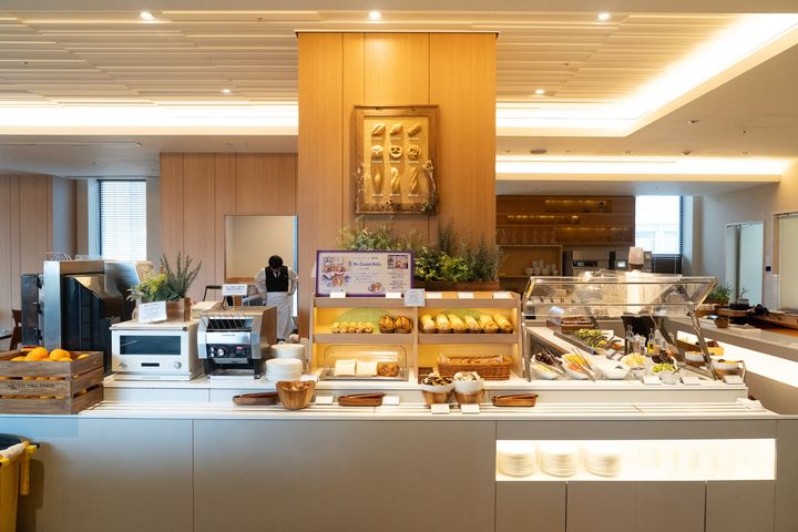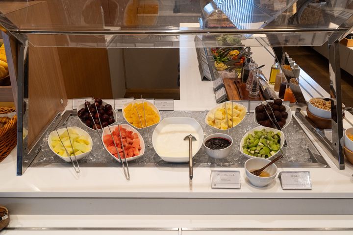 朝食は、5階ラウンジ「プレミアラウンジ」で。ビュッフェ形式で、和・洋・中のお料理がバランスよく並び、全体で約80種類以上という充実ぶり。ジャンルの垣根なく、さまざまなテイストのメニューが揃っていて、どんな朝の気分にも寄り添ってくれる構成でした。