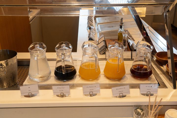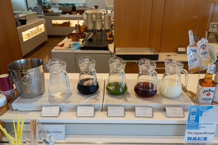 ソフトドリンクはとにかく種類が豊富。カルピス、オレンジジュース、アップルジュース、烏龍茶、ホットコーヒー、宇治抹茶グリーンティー、紅茶などから選べます。観光後のひと息や、朝食前のちょっとした水分補給にもありがたいラインナップ。甘すぎず飲みやすい宇治抹茶グリーンティーが個人的にはお気に入りでした!