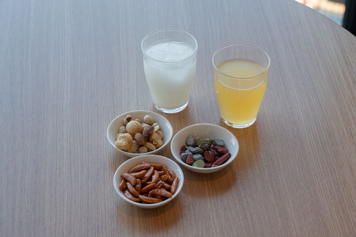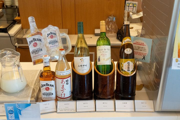 甘酒、ハイボール、白ワイン、赤ワイン、日本酒といったアルコール類も用意されていました。予定の合間や食事の前に軽く1杯…というのも気軽に叶います。