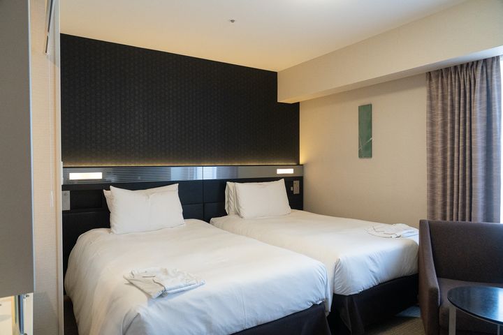 ベッドはシモンズ社製のセミダブルサイズが2台。適度な弾力とふんわりとした寝心地で、観光でたっぷり歩いた体をしっかりと休ませてくれます。寝具も清潔感があり、パジャマは上下セパレートタイプ。寝心地への細やかなこだわりが感じられました。