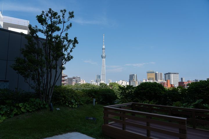 そしてロビーには、宿泊者専用のテラスが!なんと、そこのウッドデッキからは、東京スカイツリー®が真正面にどーんと見える絶景ビューが広がってます。都心のホテルでこれだけ開けた眺望が見られる場所はとっても珍しいですよね...!