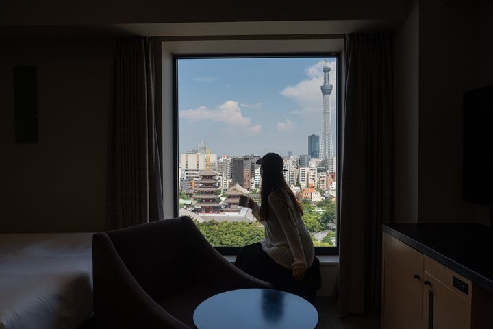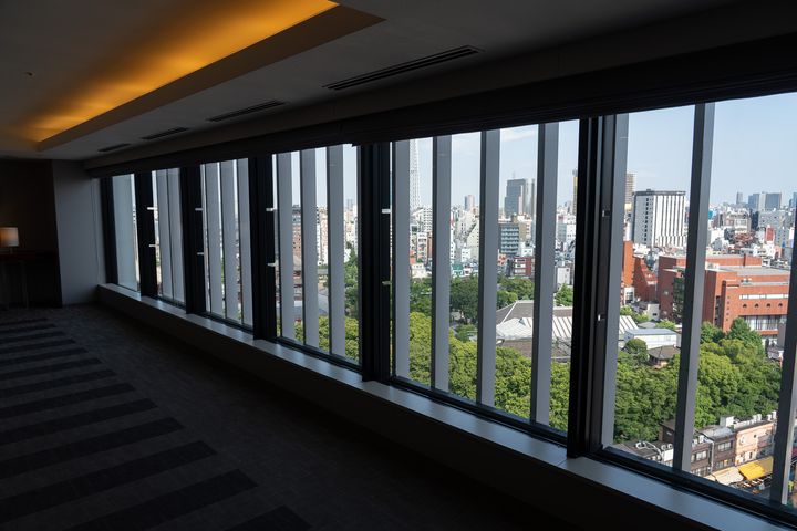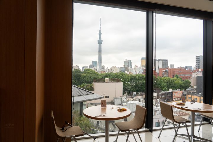 ホテルは13階建てで、6階から上が客室フロア。浅草のにぎわいの中にありながら、客室からはスカイツリーや浅草寺を望むこともでき、喧騒を忘れられる落ち着いた空間が広がっていました。