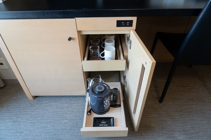 目の前に建物がほとんどないため、スカイツリーだけでなく、浅草寺の五重塔や周辺の街並みの明かりもよく見えて、まるで一枚の夜景パノラマを楽しんでいるかのよう。観光を終えてお部屋に戻ってからも、特別な時間が流れていました。窓際のソファに座って、コーヒーを片手にのんびりと夜景を眺める時間は、今回の滞在の中でも特に印象的なひとときでした。