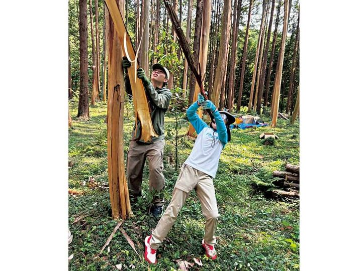 夏でも涼しく感じる森の中で、間伐作業の一環で木の皮むき体験をしました。地域おこし協力隊の方から、林業において間伐作業がなぜ必要かといった説明を受け、他の参加者の方と力を合わせて作業できたことも貴重な体験となりました。 作業に慣れてくると、息子の方が力もあり私よりも器用にこなしていて、頼もしく感じて驚きました。(内田明香さん 42歳・銀行員、息子10歳)