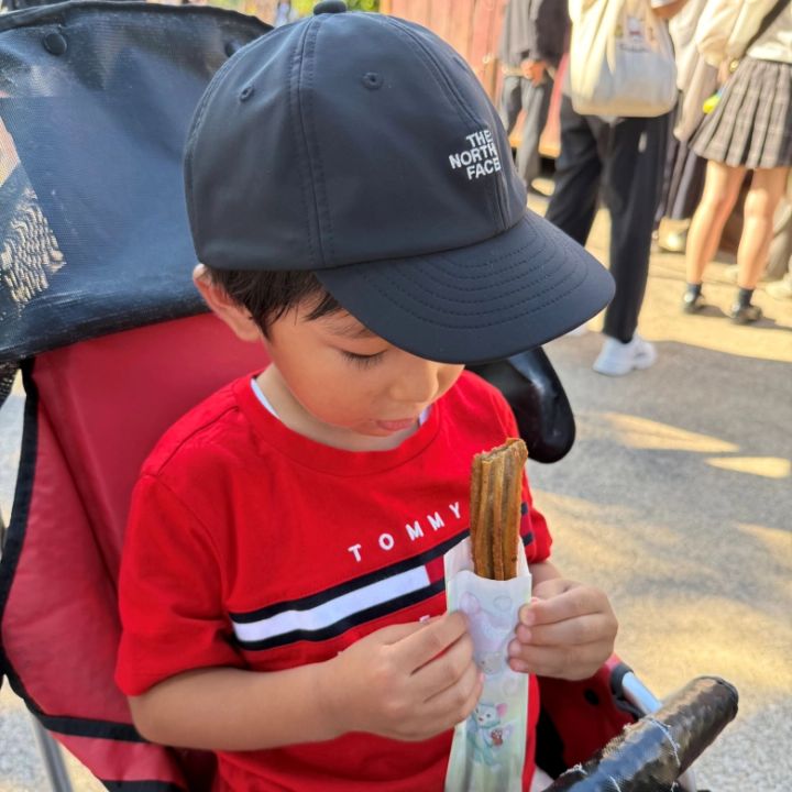 15時入園でもまだまだ暑いので、子どもは帽子必須!首につける日よけタオルや冷感ネックリングも活躍しました♡ママはサングラスとアームカバーで紫外線対策。ベビーカー利用だったので日傘は持てませんでしたが、徒歩でパークを回るなら日傘もあると良いと思います!