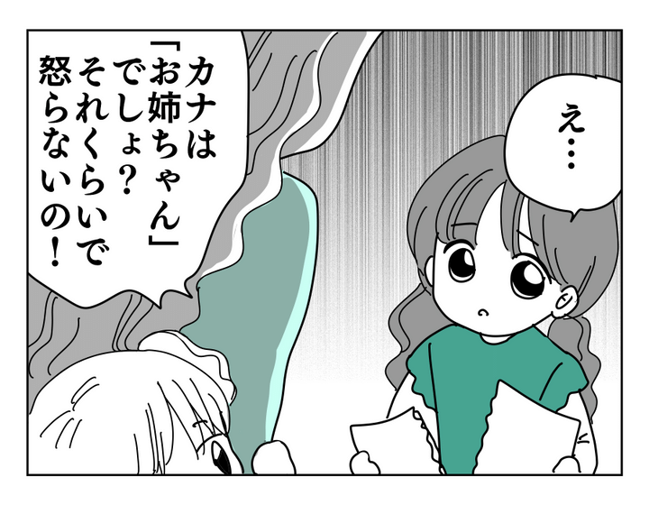 あぁ……ミカコさん……。結局実母さんと同じことを繰り返してしまっていますね。無神経な発言をしてしまったことに対しては申し訳ないと思っているようですが……。当然のように「第一子はしっかりするべき」と考え、わが子に言っているようです。たしかに姉妹関係が歪んでいた原因が実母さんの子育てにあったことについては、ミカコさんにとっては関係のない話です。でも今回の揉め事の原因や内情をしっかり理解していれば、こんな発言はしないのではないでしょうか。ミカコさんの今後の子育てが気になるところですが、他人なので口出しせずに見守っていきましょうか。カナちゃんとリオちゃんが末永く仲良しでいられますよう、心から願っています。