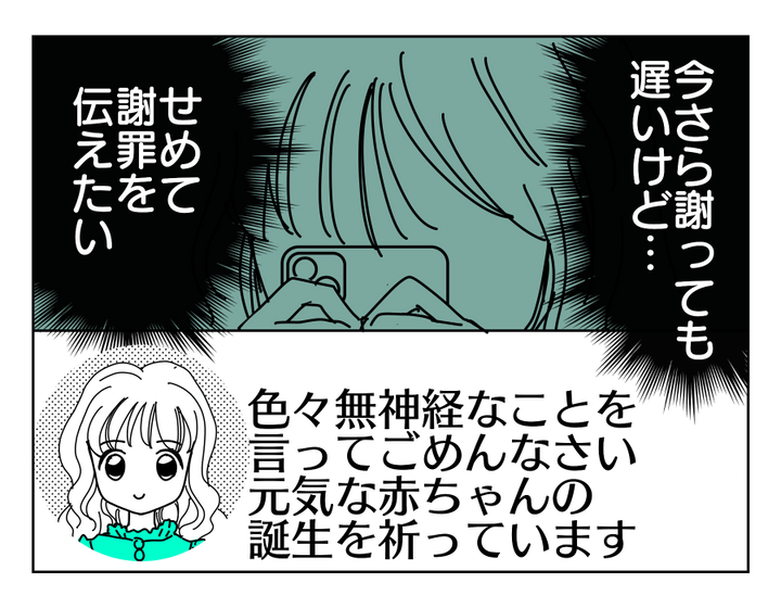 私(ミカコ)は、夫のコウヘイと、現在8歳のカナと5歳のリオの姉妹を育てています。私の5歳年上の姉は、昔から優しくてあまり怒らない人でした。そんな大切な姉が結婚をして、しかもとんとん拍子に妊娠まで! もう高齢だから子どもは難しいかな~なんて思っていたので、自分のことのように嬉しかったです。それなのに、いきなり姉から「今後は連絡を控えさせてください」とメッセージが……。母が姉に連絡すると、姉は私が出生前診断をすすめたことが原因みたいな言い方をしてきたのです。母と姉の家におさがりを届けに行ったら、姉から絶縁宣言をされてしまいました。夫からも「ミカコが無神経だったと思う」と言われ、ようやく自分が発してしまった言葉の重大さに気がついたのです。そして姉に「ごめん」と最後の連絡をしたのでした。