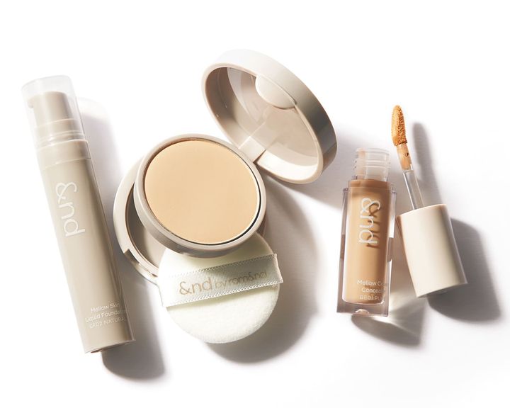 リキッドやパウダーが選べるファンデやコンシーラーなど、大人肌のキメを整えるベースメークアイテムに注目。左から:メロウスキンリキッドファンデーションBE01 ¥1,320、コンフォートベルベット プレスパウダーファンデーションNU01 ¥1,320、メロウカバーコンシーラー BE01 ¥880(すべて&nd by rom&nd)