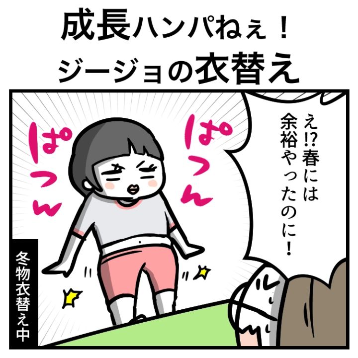 成長期の子どもの衣替え…「え!?もう着れなくなってるの!?!?」って服がどんどんと出てくるのでヒヤヒヤもの。平日の、めちゃくちゃ寒い朝に判明したりするので、早めに確認しておかないといけないのです〜(汗)