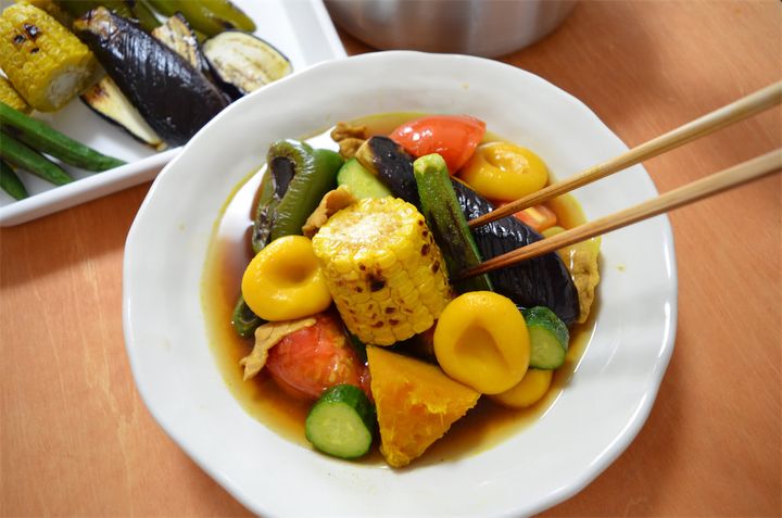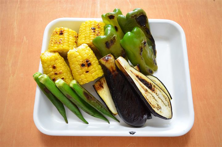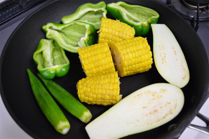5. ピーマン、なす、とうもろこし、オクラを焼く。