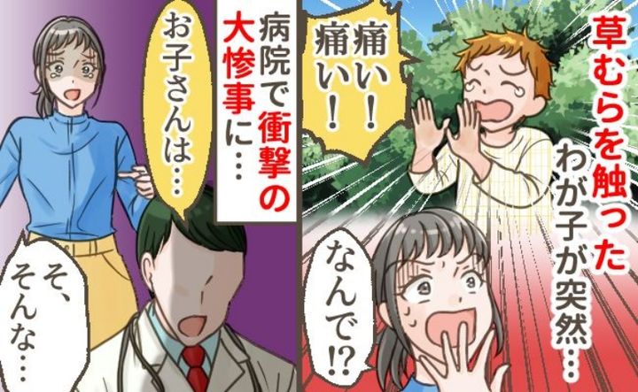 「ママ…手が!」草を触った息子が激痛を訴え急に大泣き!なんで…!?病院を受診するとまさかの事態に