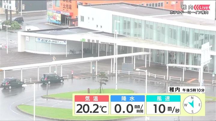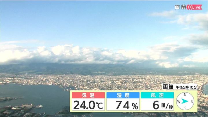 函館では晴れていますが、早朝は函館市の川汲で1時間に52ミリの非常に激しい雨が降りました。