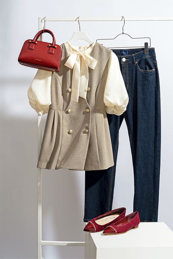 バッグ¥84,700/STRATHBERRY 靴¥16,500/ダイア ナ( ダイアナ 銀座本店) ジレ¥12,991/NATURAL BEAUTY BASIC ブラウス¥7,997/PROPORTION BODY DRESSING パンツ¥3,190/神戸レタス