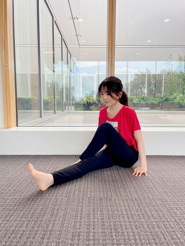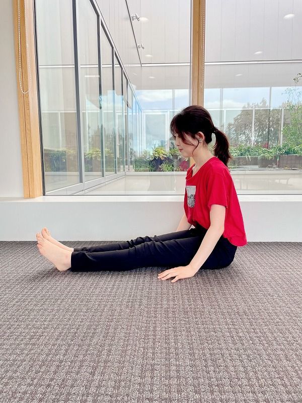 ①座った状態で両足を前に伸ばす。