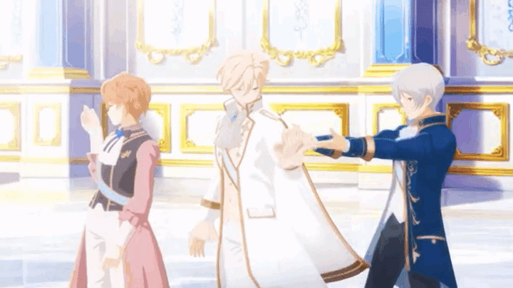 『マリー・アントワネットに転生したので全力でギロチンを回避します』第7話では、マリー・アントワネット(CV:ファイルーズあい)の誕生日祝いに歌とダンスを披露した3人の王子、ルイ(CV:増田俊樹)とシャルル(CV:土岐隼一)、スタニスラス(CV:大塚剛央)。