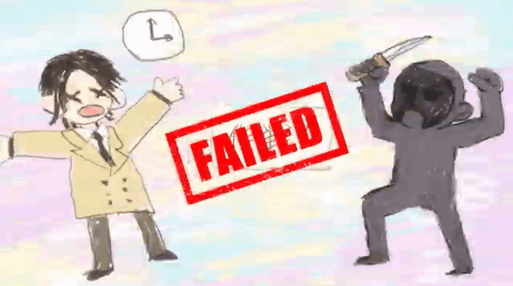 作戦1から6、いずれも失敗。結局は黒い男に殺されて2時55分の取調室に戻ってしまう。