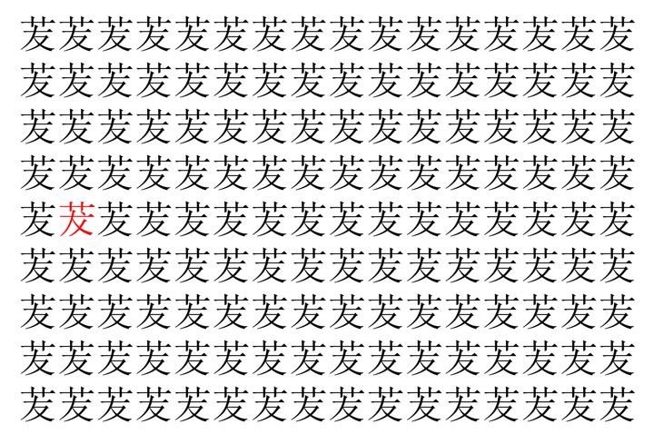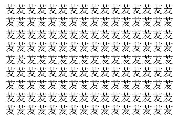 画像に並んだたくさんの「苃」という漢字。 その数144個なのですが・・・、実はその中に1つ違う漢字が紛れ込んでいます!!