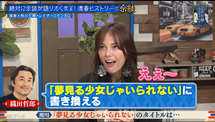 なお、この相川七瀬の余談は8月27日に放送されたバラエティ番組『これ余談なんですけど・・・』で明かされた。