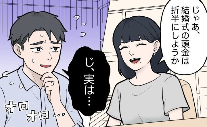 結婚式について話していたある日、式場の支払いスケジュールの話になりました。私が「じゃあ頭金は折半しようか」と言うと、言いにくそうに彼から「実は……」とあることを打ち明けられて……。