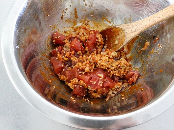 3. ぐっちの推しネタをアレンジ!ねっとりネバネバがクセになる「まぐろ納豆ユッケ」