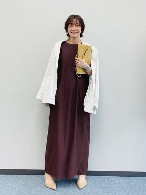 「ジャケットとヒールを合わせれば、秋のおでかけコーデに。シンプルなデザインなので、アクセサリーやシューズでキレイめにもカジュアルにも振れる万能ワンピースです。」
