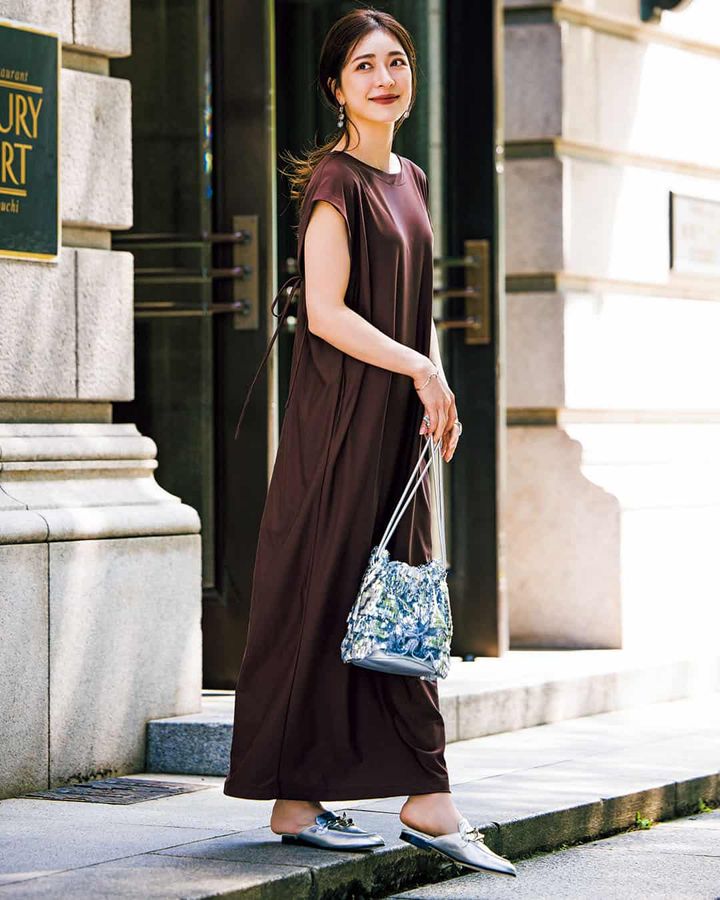 着回しアイテム:二の腕&腰回りをカバーして、スリットで細見えを叶える「名品ワンピ」