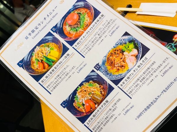 こんにちは!元香港在住frankieが、暑い中頑張って足を運んでも食べたいのは、銀座の香港料理専門店「喜記」の夏の麺です。第1弾は逃したものの、先日かなり遅い時間のランチでしたがひとりで飛び込んで大正解!脳内に爽やかな清流の音と鳥のさえずりが聴こえるほどに癒されました(←大袈裟ではない)。夏季限定ランチメニュー4種。あなたならどれにします?