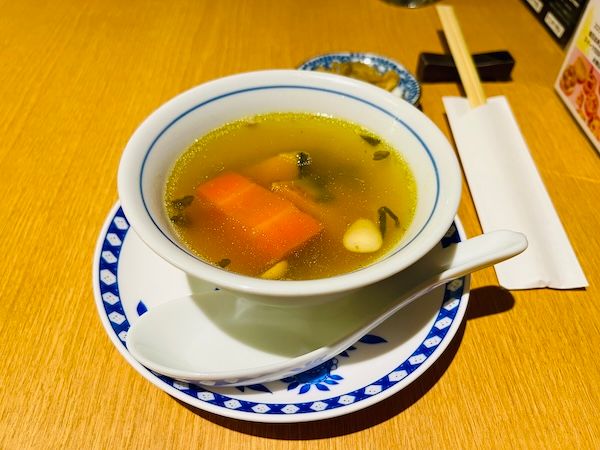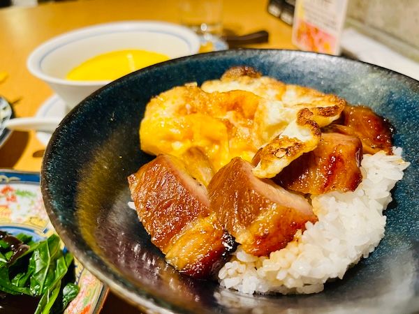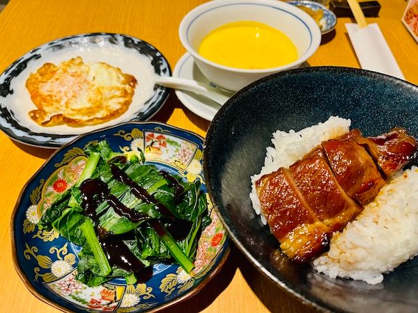 平日限定「叉焼販セット(2000円)」は、体にいい滋味たっぷりの炊き込みスープ、青菜炒めなど香港の定番料理と香港発祥のデザート楊枝甘露なども含まれて満足度が極めて高いセットメニューです。独自の製法で作られる蜜汁たっぷりの甘じょっぱいチャーシュー。タレがご飯に沁み込んでご飯も進みます。映画を見たことなくても存分に香港旅気分を満喫できるスペシャルなメニューです。このセットは大人気で度々提供期間が延長されて今に至っているようですが、定番ってことでいいのでは?と個人的に思っています。